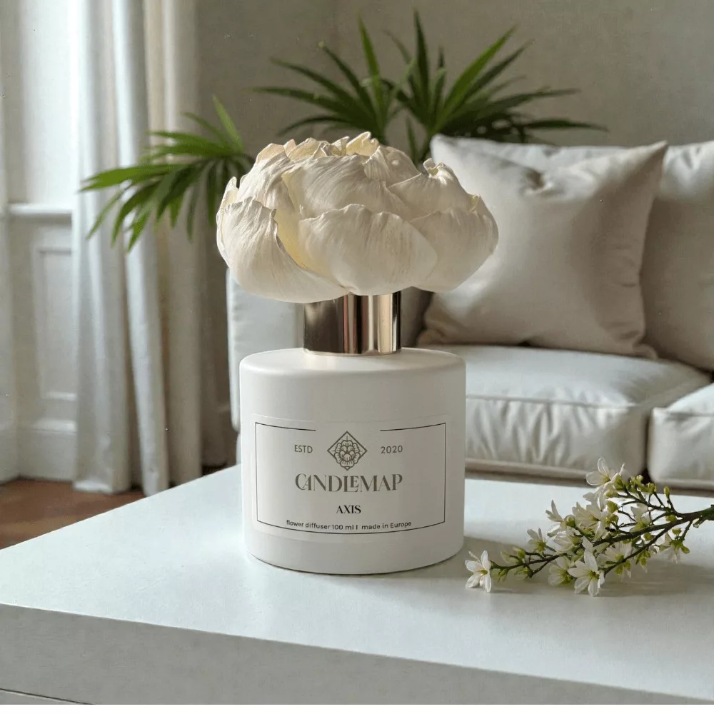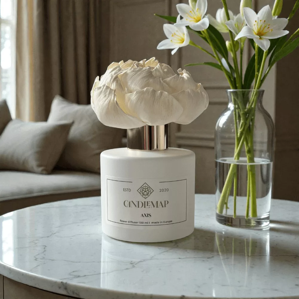 Difuzorul cu flori eliberează parfumul constant și uniform, în timp ce floarea difuzorului absoarbe lent esența și se deschide într-o formă naturală. Astfel, Axis este prezent calm și consecvent în locuință, creând o senzație de siguranță și echilibru.