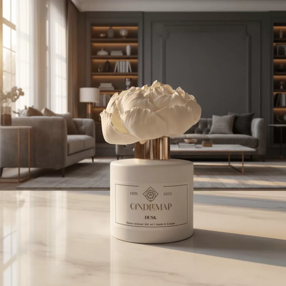 Difuzorul cu flori eliberează parfumul constant și uniform, în timp ce floarea difuzorului absoarbe treptat esența și se deschide în mod natural. Astfel, parfumul Dusk este prezent calm, dar hotărât, adâncind atmosfera strat cu strat.